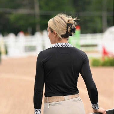 "Luna II" Black with Geometric Long Sleeve Performance Show Shirt