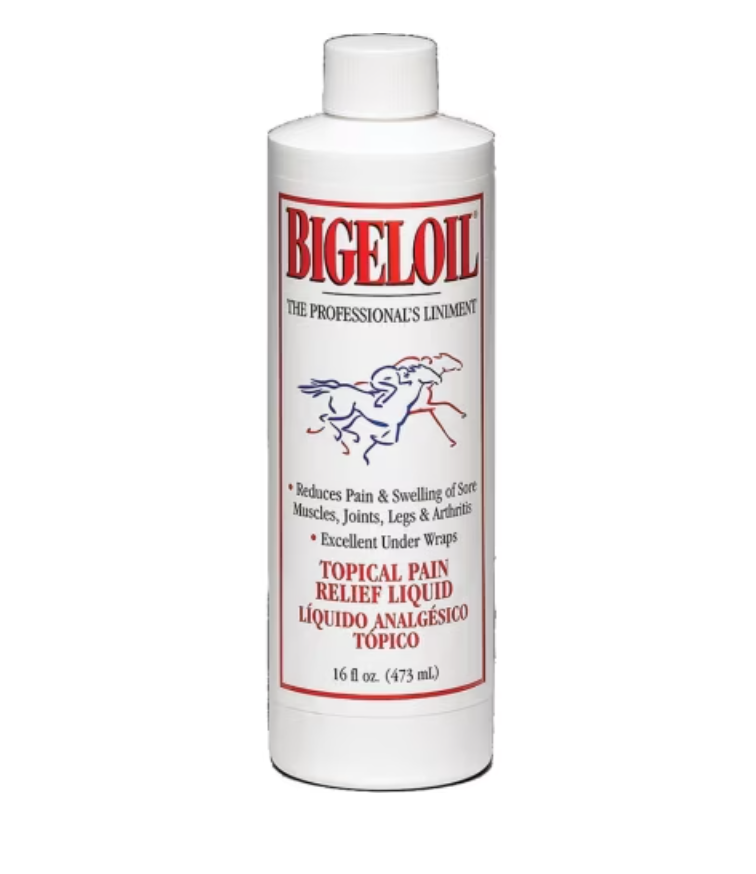 Born on the race track, Bigeloil® Liniment is an invigorating liquid rub that quickly stimulates circulation to help relieve sore muscles, tendons, and joints. Bigeloil® features a pleasant scent and a more moderate sensation than our Absorbine® Veterinary Liniment.