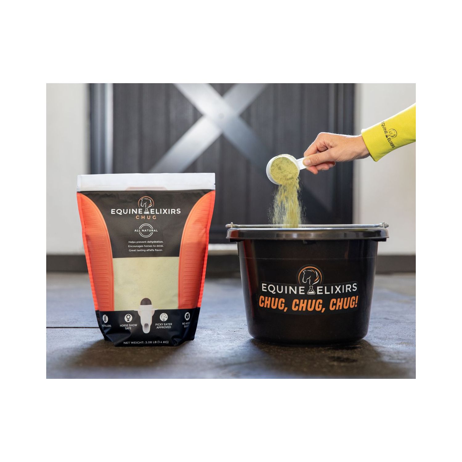 Chug is designed to encourage horses to drink water and stay hydrated. A delicious smelling and tasting alfalfa extract combined with a hint of Himalayan salt forms the perfect flavor profile to entice the reluctant drinker to chug!