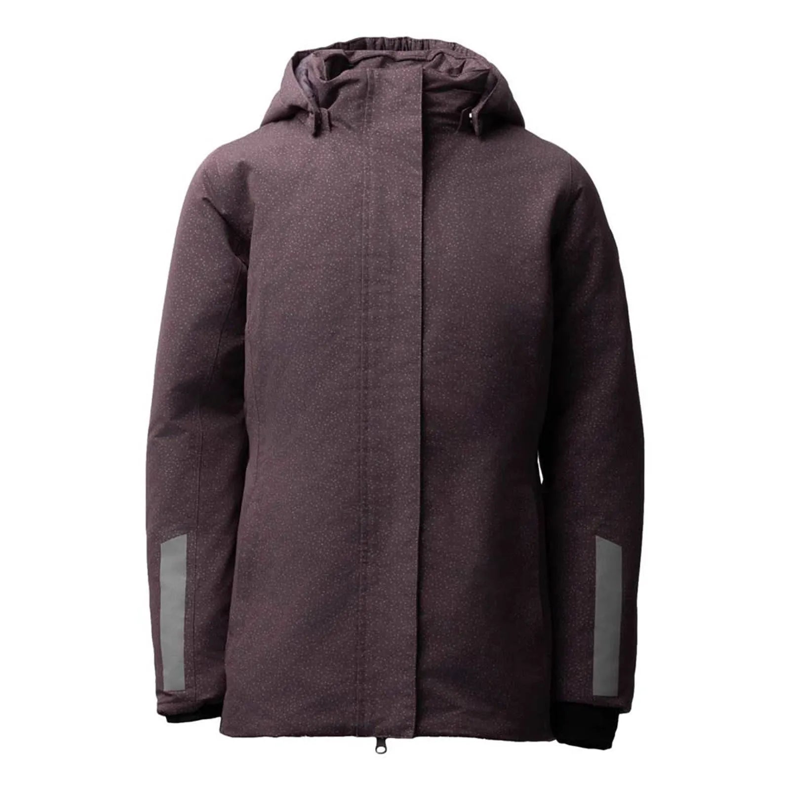 The Horze Jessie Kids Waterproof Winter Riding Jacket is a warm and protective outer layer designed for kids. It features 3000mm waterproof and 3000mvp breathable fabric with taped seams to keep kids dry and comfortable. Reflective glitter dots across the fabric, along with reflective stripes on the sleeves and back yoke, enhance visibility. The jacket includes a removable hood, adjustable back waist, Lycra inner cuffs for a snug fit, and a two-way zipper for easy wear and added flexibility.