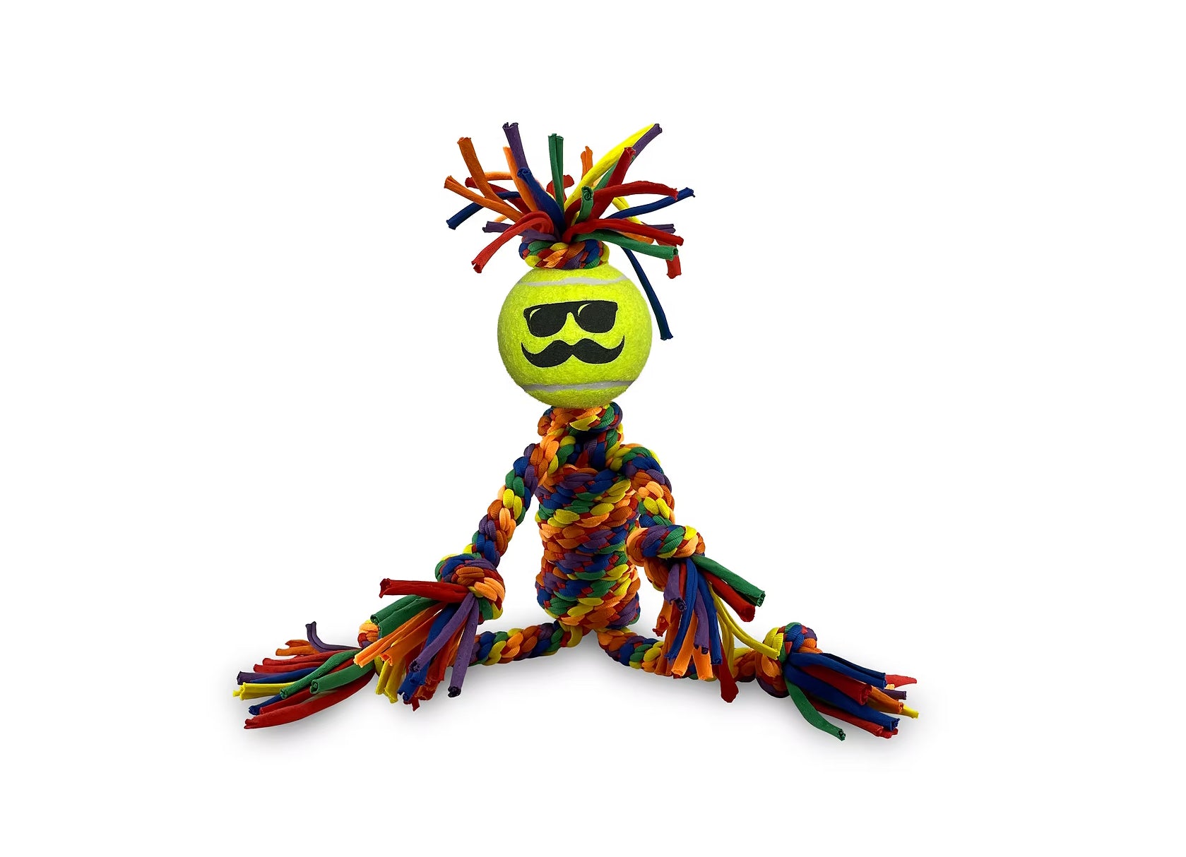 Kaleidoscope Rope Medium Dude w/ Tuff Ball is made for small to large dogs.