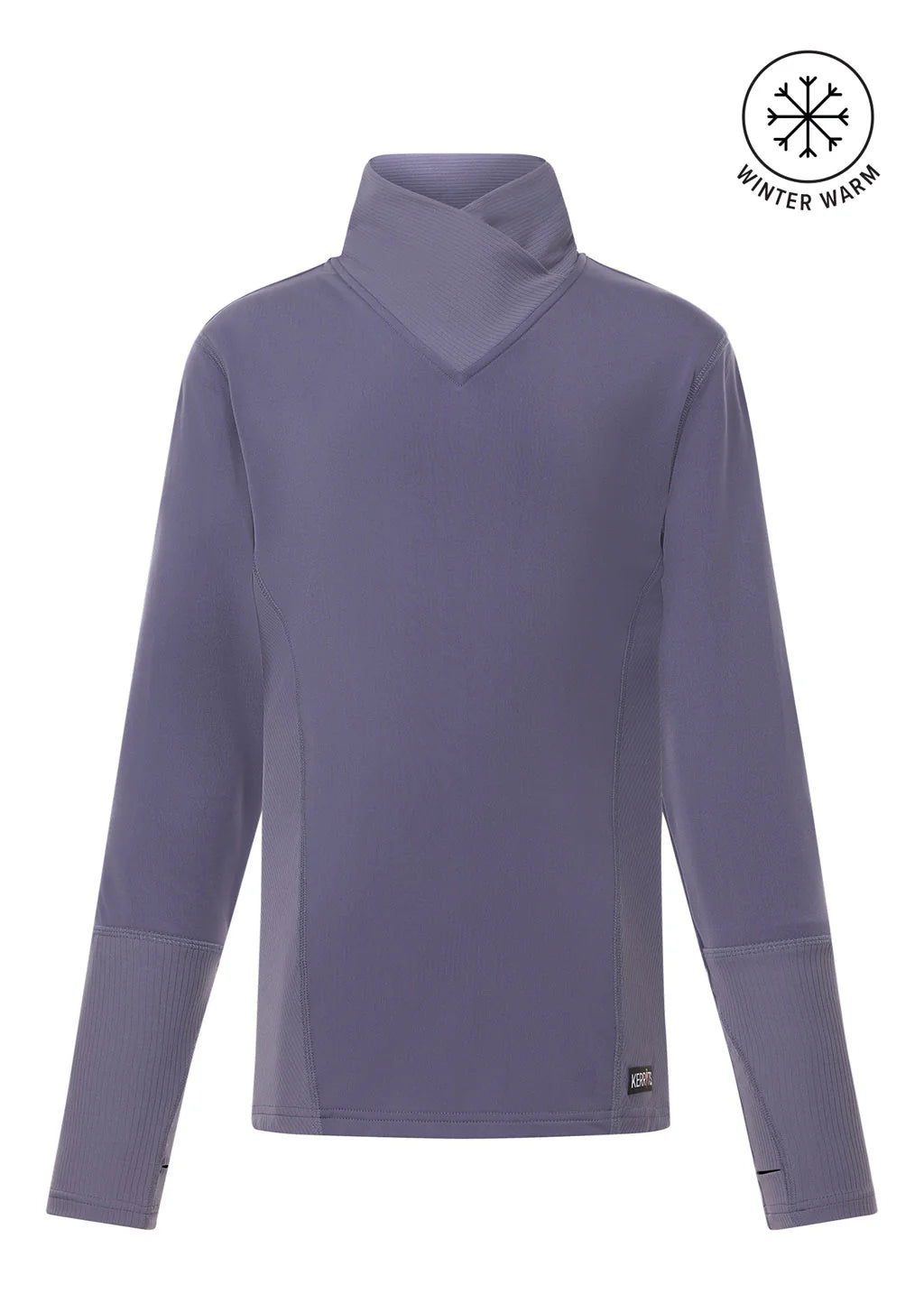 This kids riding top combines fun style with all the functionality they need for cool-weather rides. Made from a technical four-way stretch knit, it offers a more fitted shape with a smooth exterior and a soft, fleeced interior for warmth and comfort. The extended sleeves with thumb holes keep sleeves in place for layering and provide added warmth for hands. A unique wrap neck design provides extra coziness, while ribbed stretch panels add flexibility in all the right places.