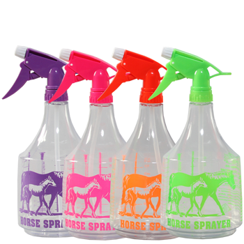 Clear PET bottle with assorted neon pink, purple, orange or green horse graphic and matching Model 300™ trigger sprayer.