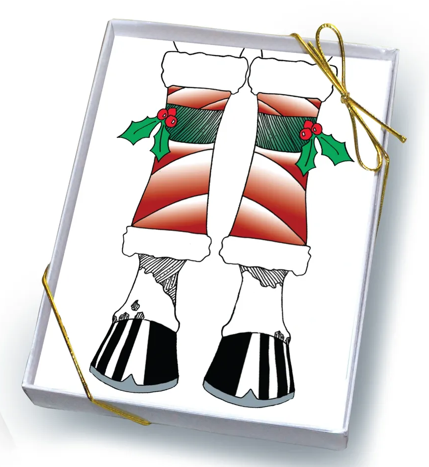 8 cards, 8 envelopes in a clear-cover stationery box held closed with a gold stretchy corded ribbon.